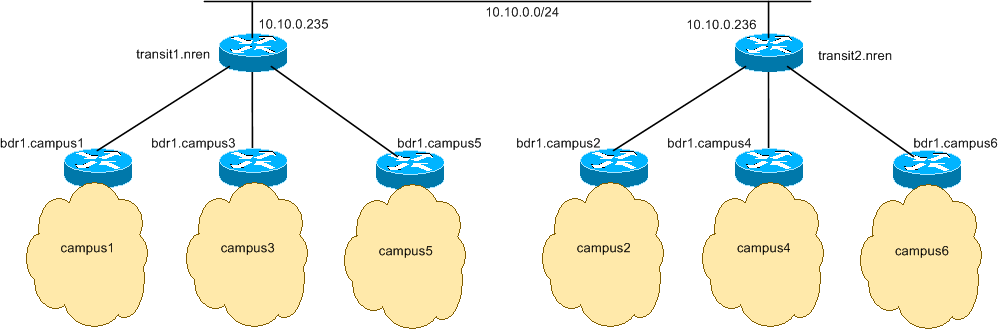| Campus | NREN Link Subnet | NREN Router Address | Campus Border Router Address |