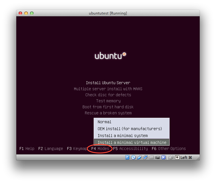 Next, press F4 and select "Install a minimal virtual machine".
