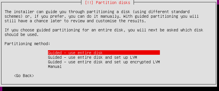 Partitioning method: Guided - use entire disk