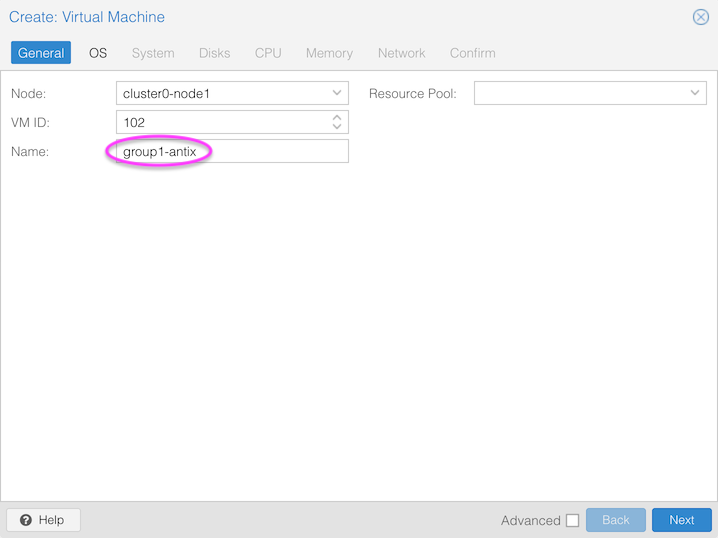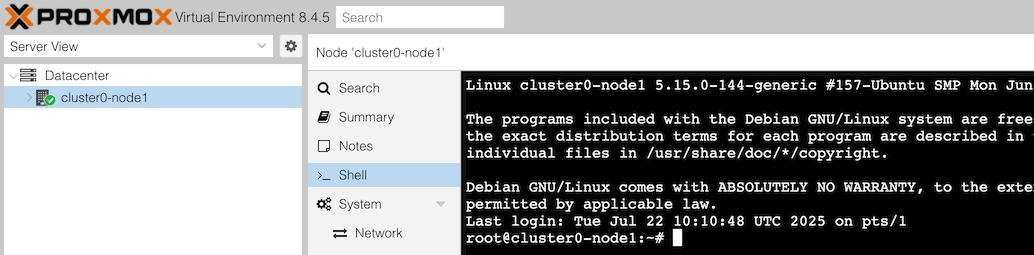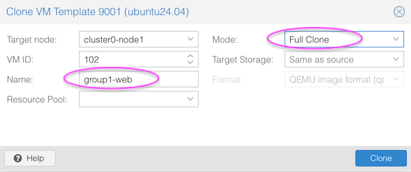 clusterX-node1. Do this in the Proxmox web UI by selecting