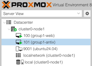 is used by groups 13-18Each server will be in the state you’ll see after a fresh Proxmox install.