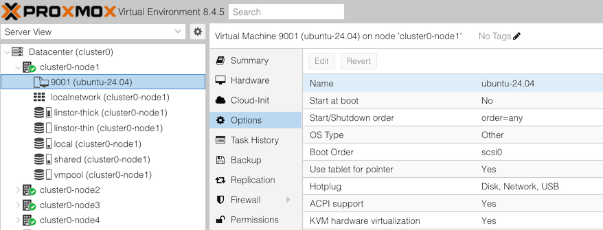 You’re going to import a pre-built OS image into your node, use it to create a VM template, which will allow you to launch ready-to-run VMs configured with cloud-init. This gives a cloud-like experience on Proxmox, making it very quick and easy to launch new VMs.